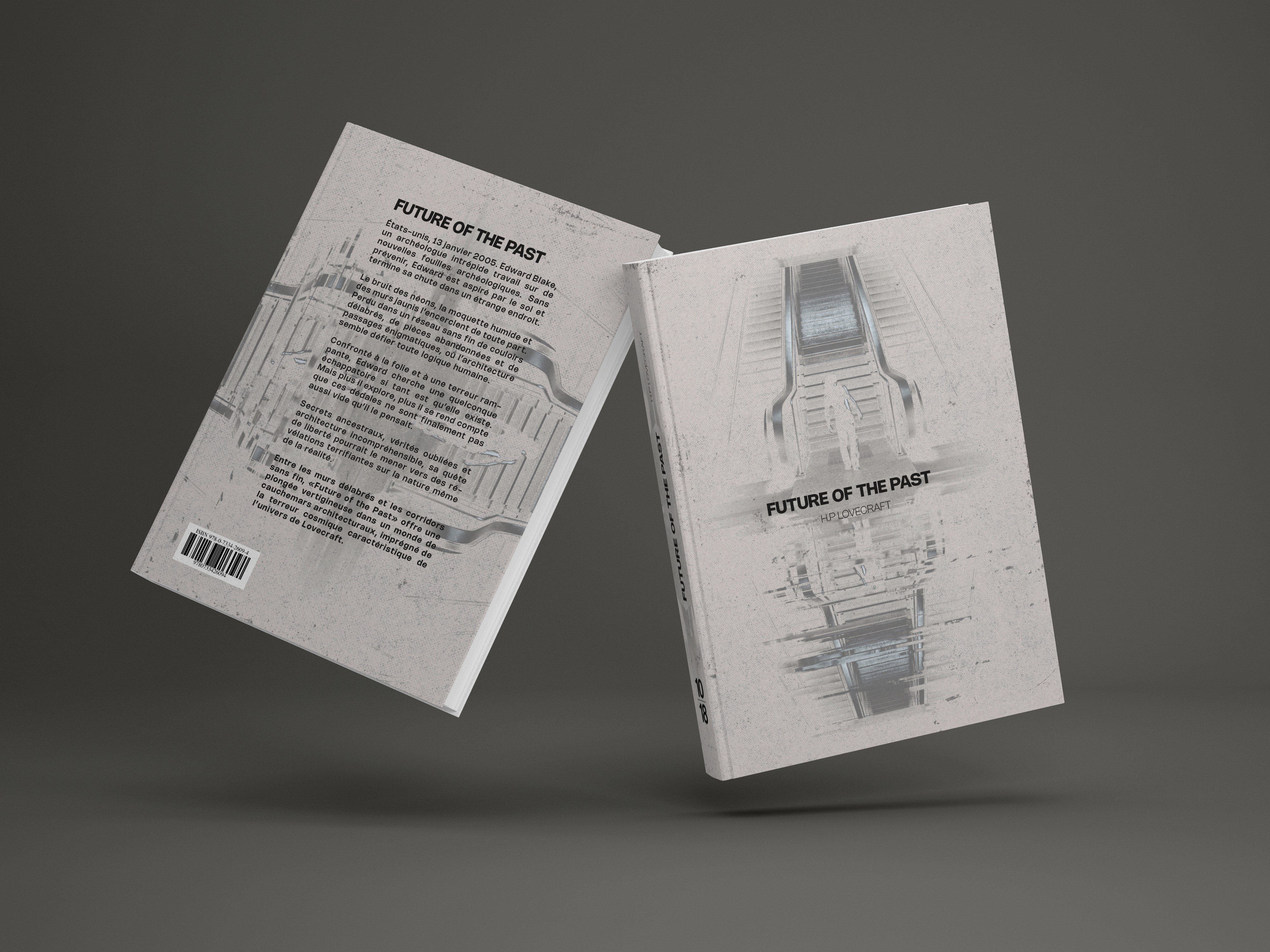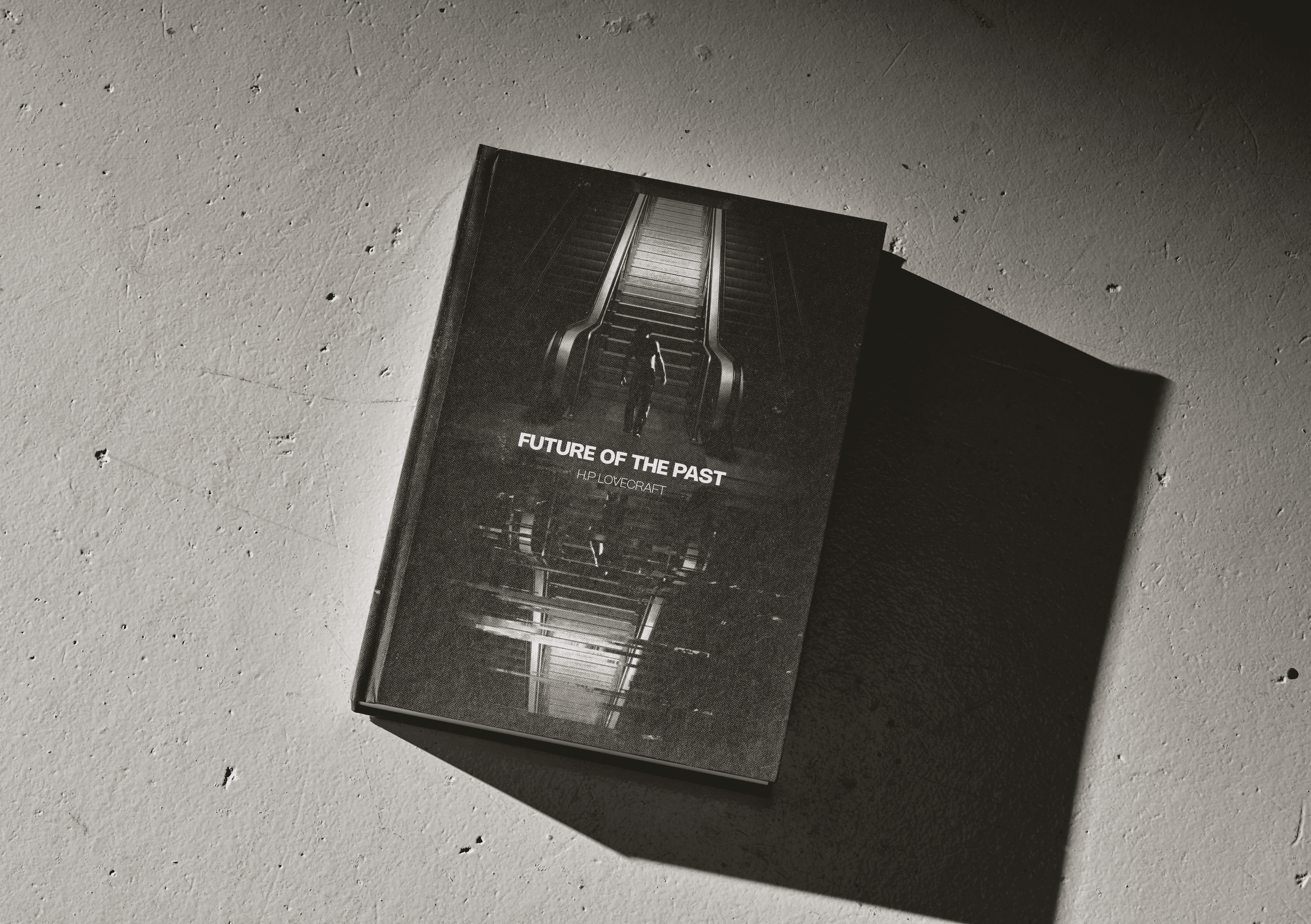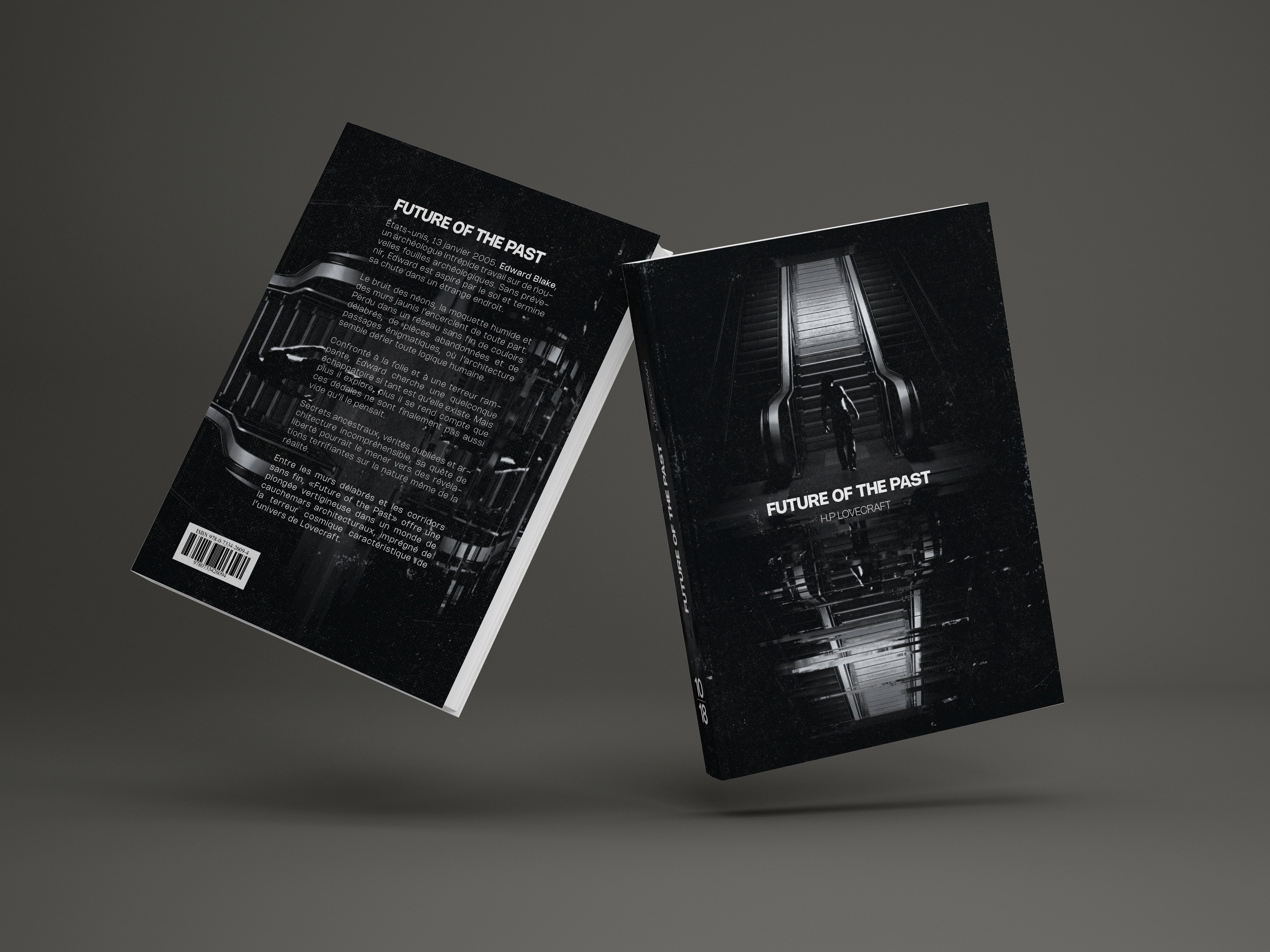 Ce projet fut imaginé comme un ancien ouvrage retrouvé de H.P Lovecraft, s’inspirant des images liminales. L'une de mes principales inspiration fut l'analyse de l'auteur Alt236 dans le livre Liminal : les nouveaux espaces de l’angoisse dans lequel j'ai pu comprendre cette univers et l'exploiter au mieux. Je suis parti sur un photomontage en noir et blanc afin d’y instaurer une atmosphère lourde et plus angoissante. Pour une version plus écologique, sans dénaturer l’esthétique de base, j’ai inversé les couleurs de l’image, incorporant davantage de blanc pour offrir une vision différente du même montage.