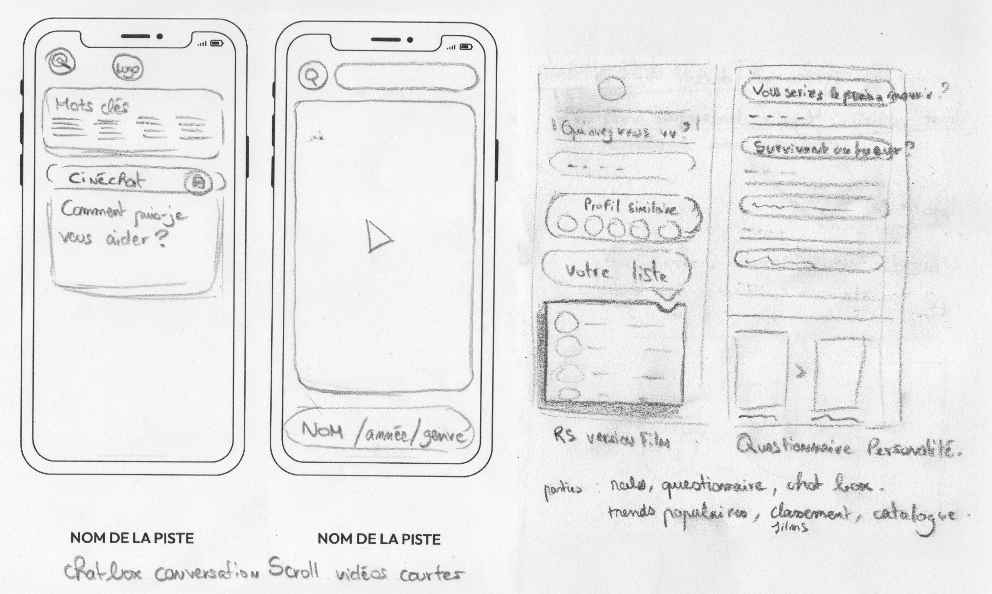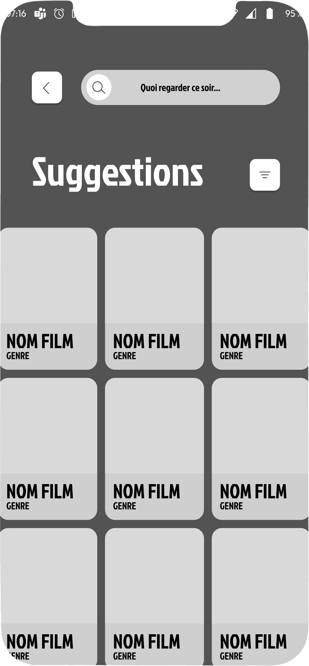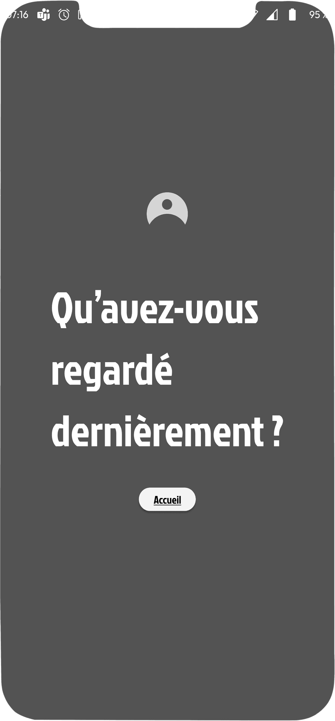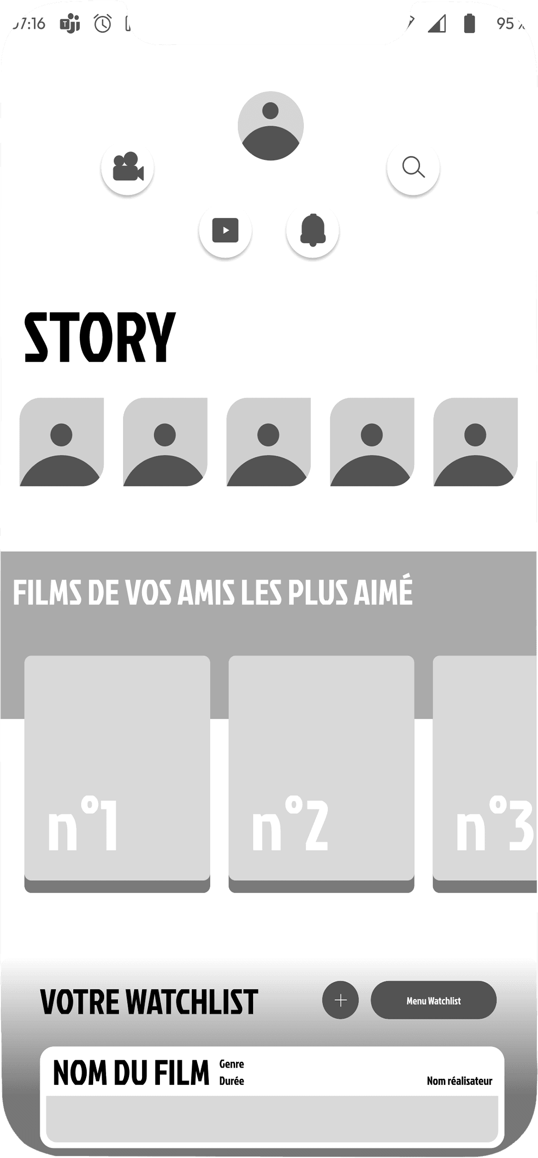 L’objectif est de permettre aux utilisateurs de découvrir de nouveaux films et séries grâce à leur liste d’amis et/ou à des créateurs de contenu, tout en bénéficiant de recommandations personnalisées. Le concept devait être capable de servir de base à un futur développement fonctionnel, tout en mettant en avant l’aspect social et interactif du service.