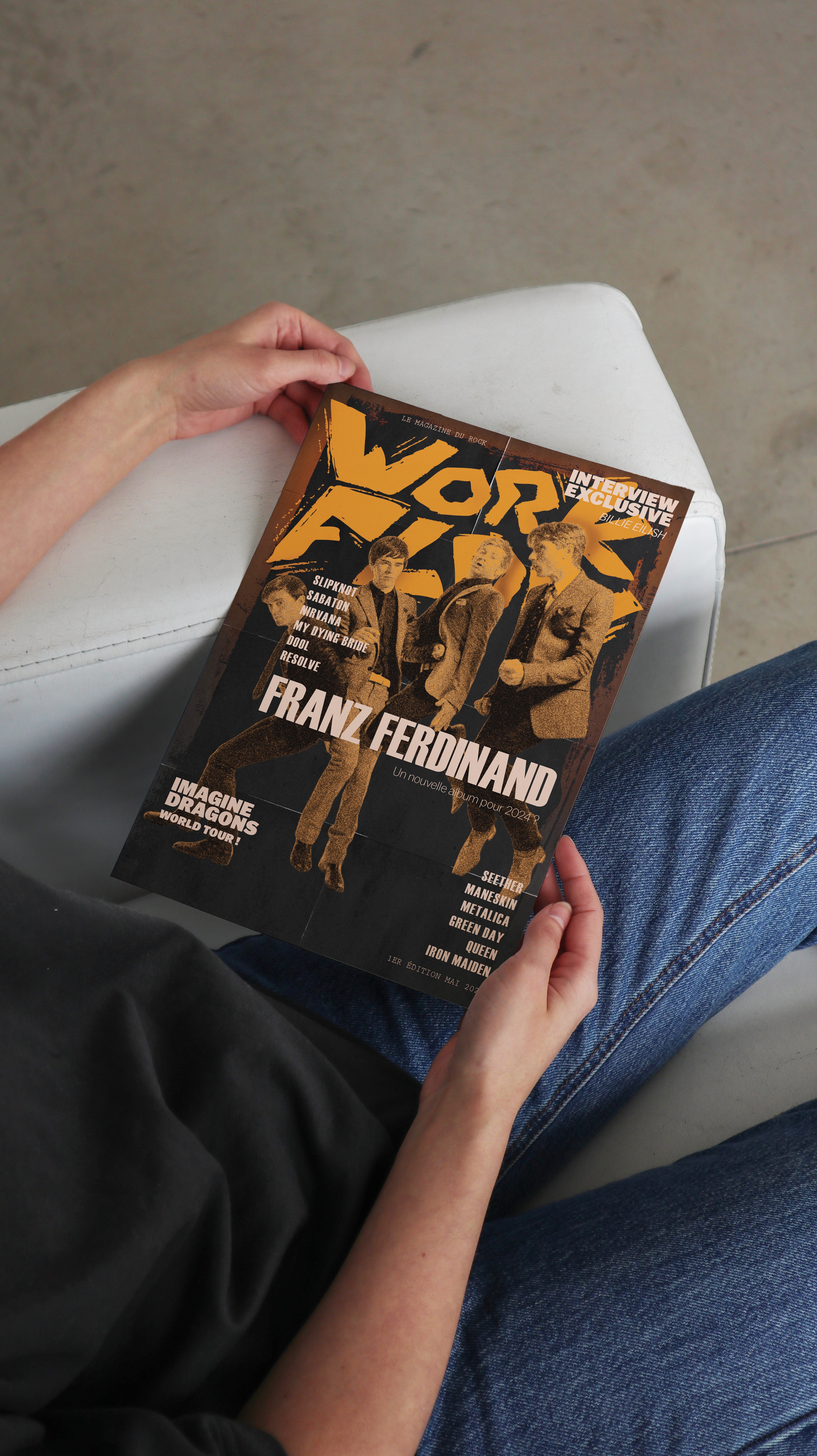 Workflow est un magazine fictif créé dans le cadre de mon projet de fin d’année d’IEC 2. Prenant pour thème le rock et le métal, Workflow se distingue par son équilibre entre éco-conception et l’esthétique marquée des magazines de métal rétro.